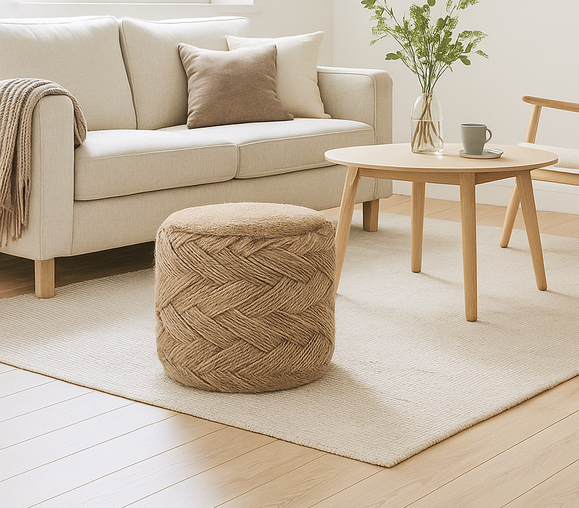 Puff Natural realizado en yute - Importado de la India
